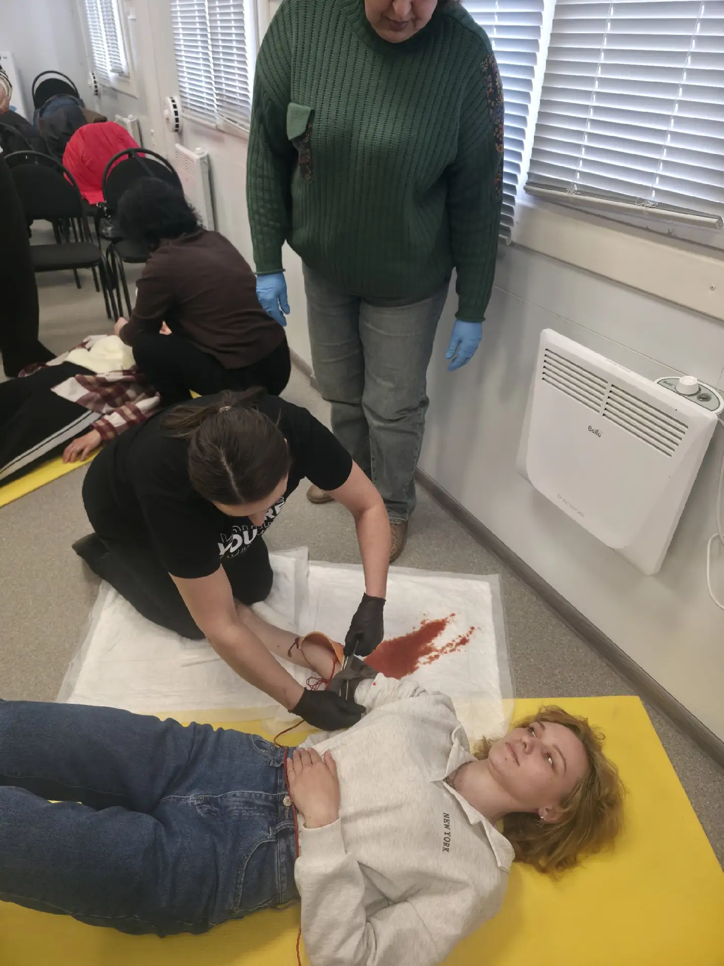 Также были отработаны практические навыки по остановке кровотечений и сердечно-легочной реанимации.