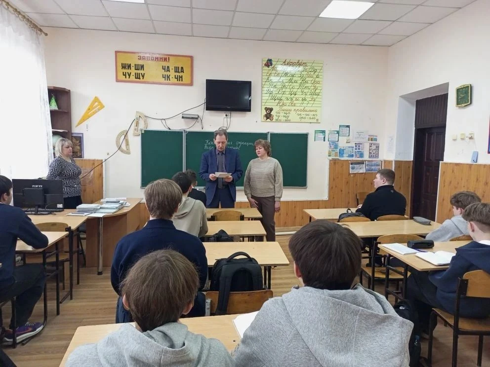 24.04.2026 в целях проведения профориентационной работы специалистом по управлению персоналом Луганского филиала Кокаревой Натальей была организована встреча с учащимися 9-11 классов Луганской средней школы № 11.