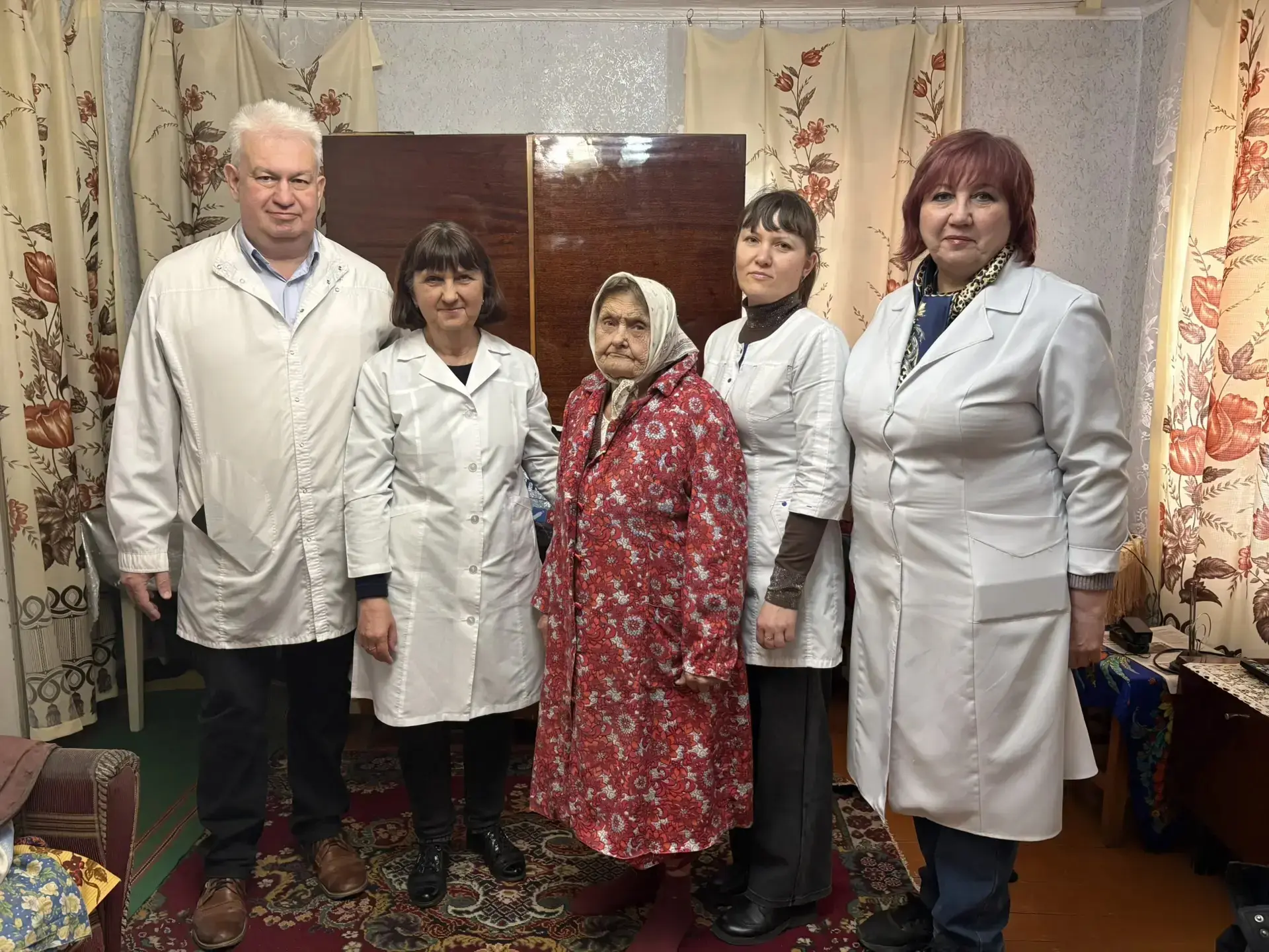 Всего в этот день специалисты осмотрели восьмерых ветеранов Великой Отечественной войны. Но мы не просто «посмотрели и ушли» — каждому провели полную диспансеризацию с рекомендациями, выпиской лекарств и, где необходимо, направлениями на дообследование.