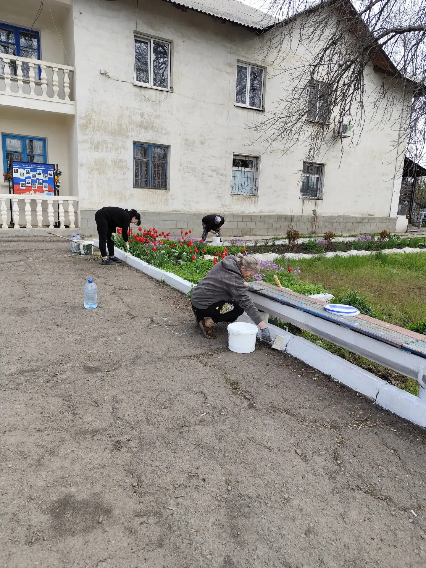 Сотрудники отдела, вооружившись необходимым инвентарем, приступили к работе. В ходе их выполнения, провели очистку газона и клумбы от опавшей листвы и мусора, выполнили побелку бордюра в центре посёлка.