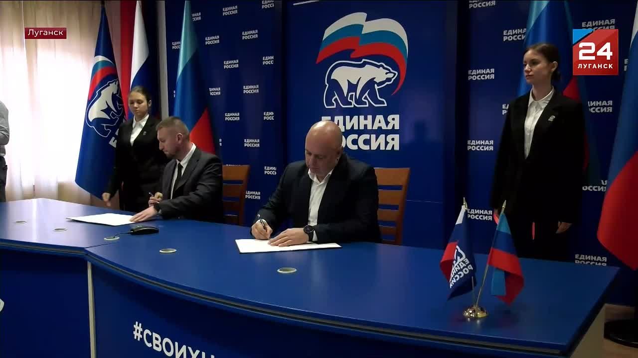 Директор МФЦ ЛНР Виталий Седых и секретарь Луганского отделения «Единой России» Денис Мирошниченко подписали соглашение о сотрудничестве.