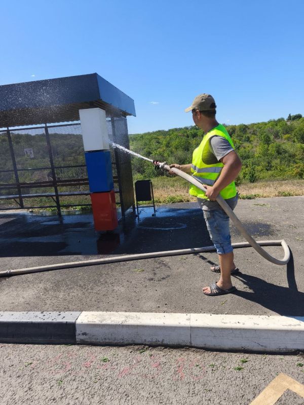 Работники помыли автопавильоны и очистили посадочные площадка от мусора, а также скосили траву и облагородили обочины, сообщили в Минтрансе ЛНР.