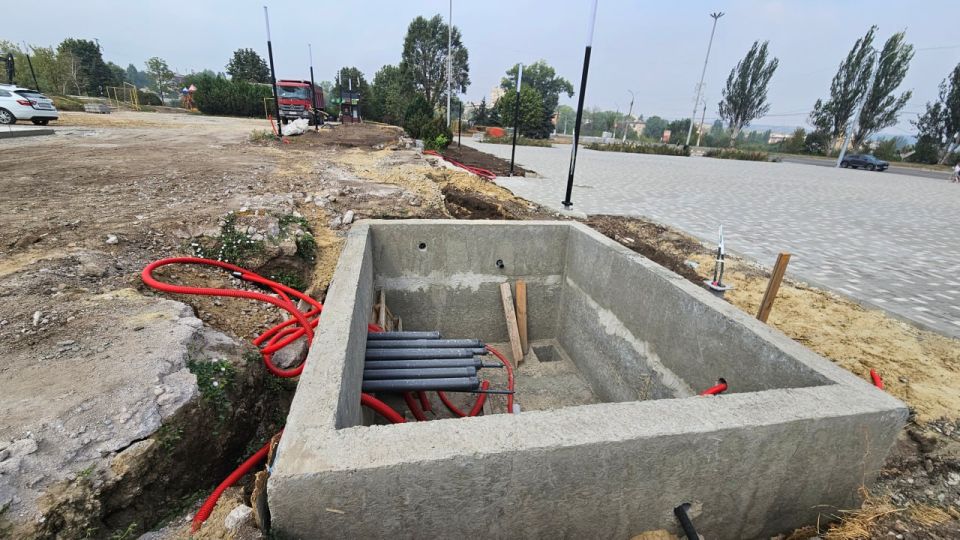 Специалисты подрядной организации приступили к монтажу светомузыкального фонтана.