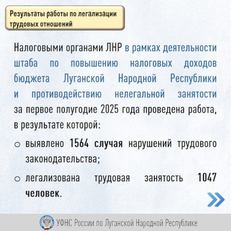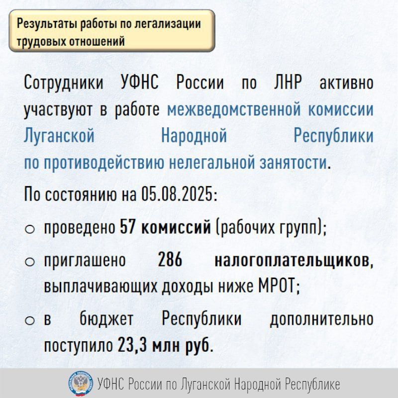 УФНС России по ЛНР продолжает работу по легализации трудовых отношений