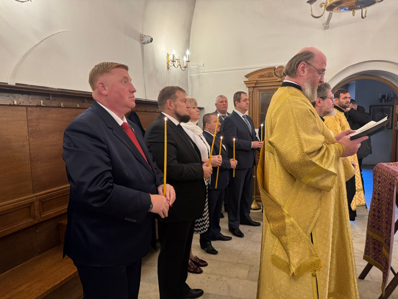 В ознаменование третьей годовщины воссоединения исторических регионов с Россией парламентарии приняли участие в богослужении в Храме Преподобного Сергия Радонежского в Крапивниках.