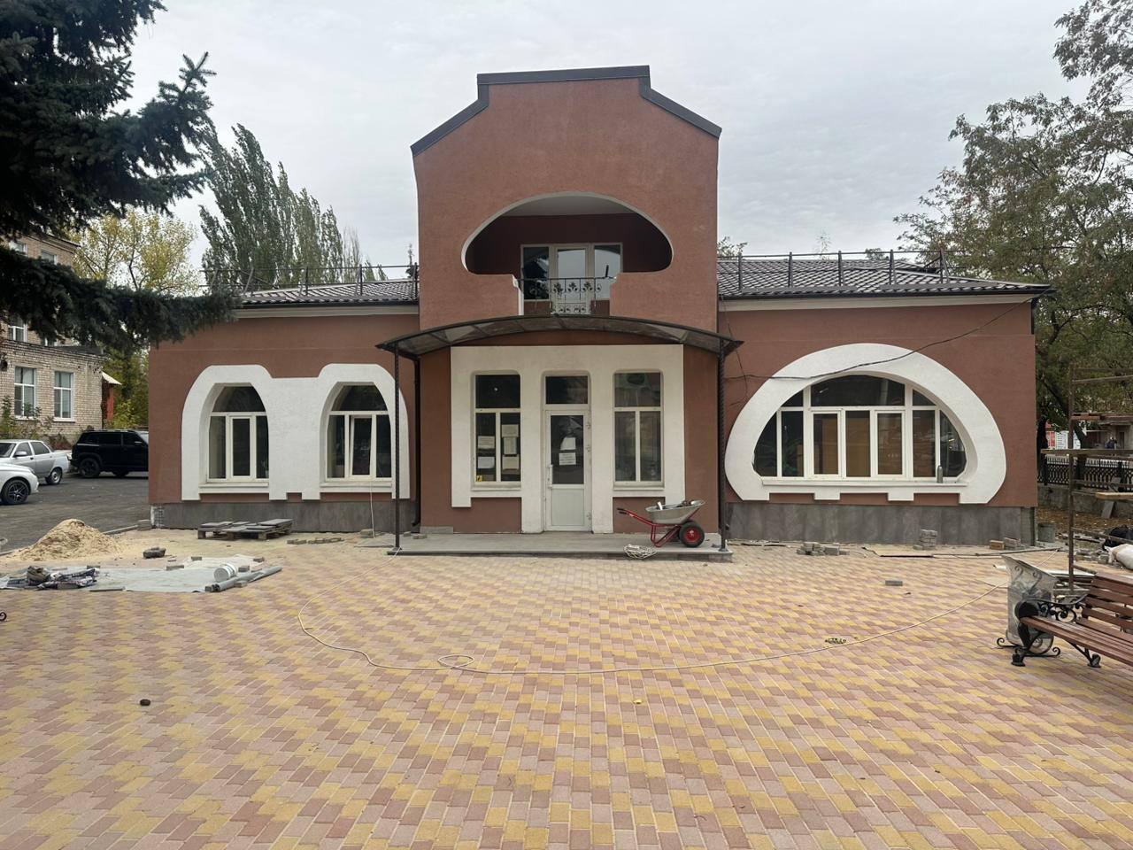 Проведена отделка внутренних помещений здания и благоустройство территории. Сейчас специалисты проводят облицовку цоколя фасада базальтной плиткой.