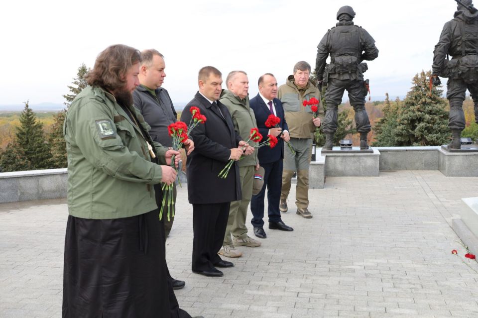 6 октября в рамках визита делегации Законодательного Собрания Санкт-Петербурга в Луганскую Народную Республику прошла церемония возложения цветов у мемориального комплекса «Острая Могила».