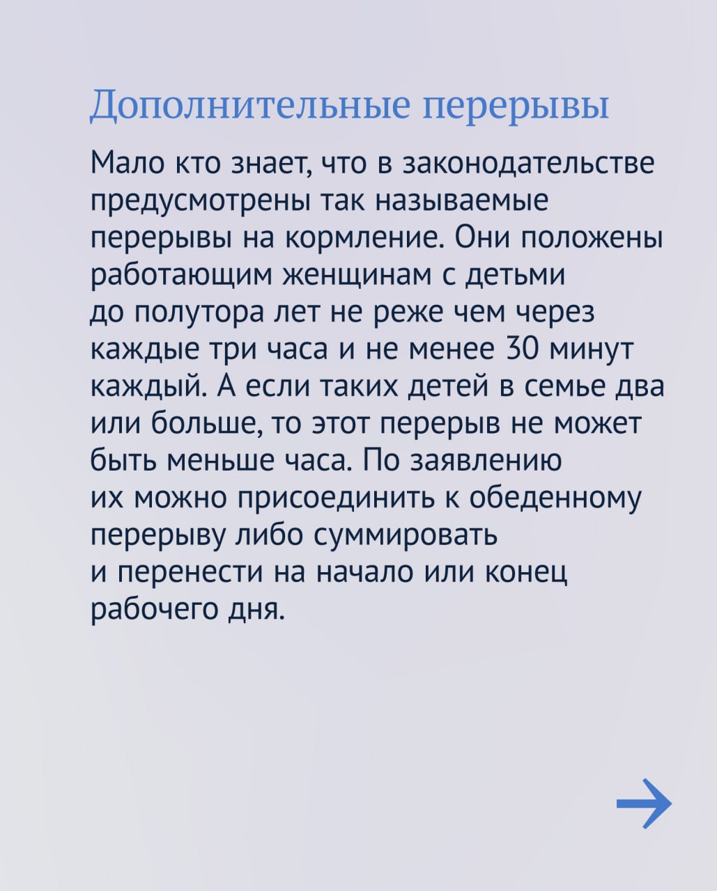 для них также предусмотрены дополнительные перерывы, которые можно прибавить к обеденным;