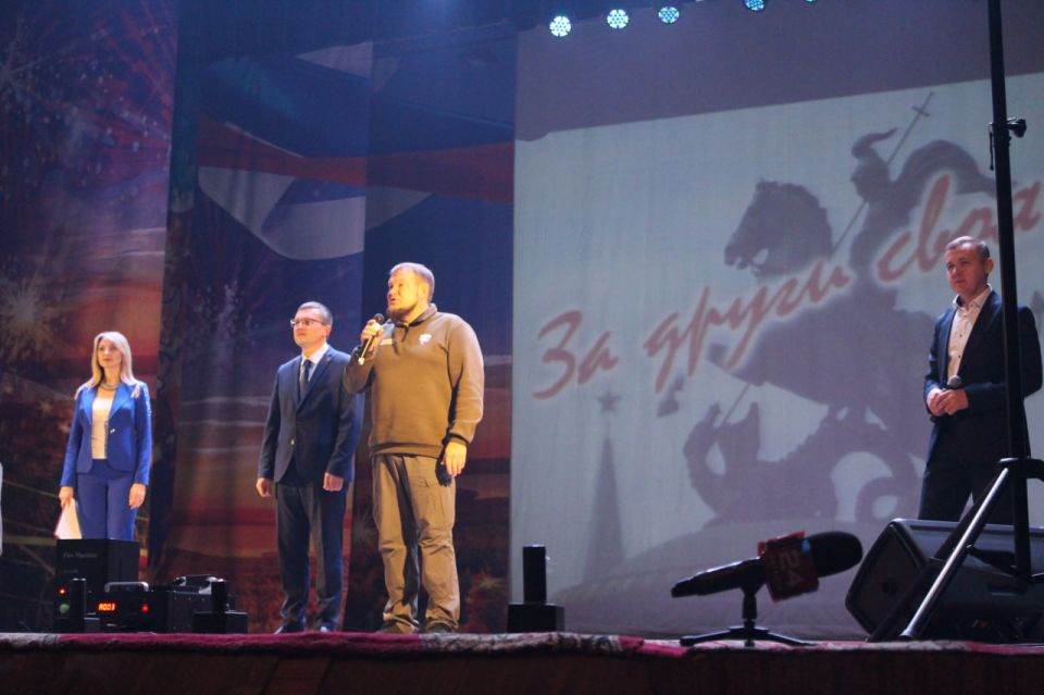 «Дорогие защитники! Разрешите от имени Председателя Народного Совета Дениса Николаевича Мирошниченко поприветствовать вас и поблагодарить за вашу героическую работу. Вы сегодня защищаете рубежи нашей большой Родины на полях специальной военной операции. Убежден, благодаря доблести и мужеству солдат на передовой и слаженной работе специалистов в тылу мы обязательно победим! С праздником!» – обратился с приветственным словом к присутствующим Денис Колесников.