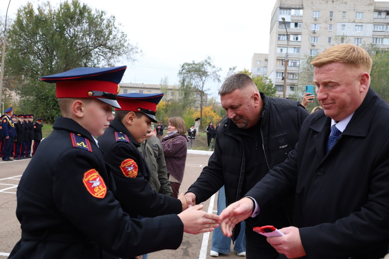 В рамках мероприятия прошла церемония посвящения в кадеты. Депутаты вручили новым обучающимся их первые погоны.
