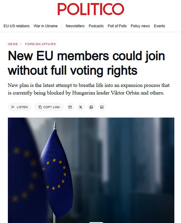 Тактика "мелких шажков" Евросоюза: сначала склонить Венгрию, чтобы согласилась на приём Украины в ЕС на "безопасных условиях" – без права вето, тем самым создать прецедент...