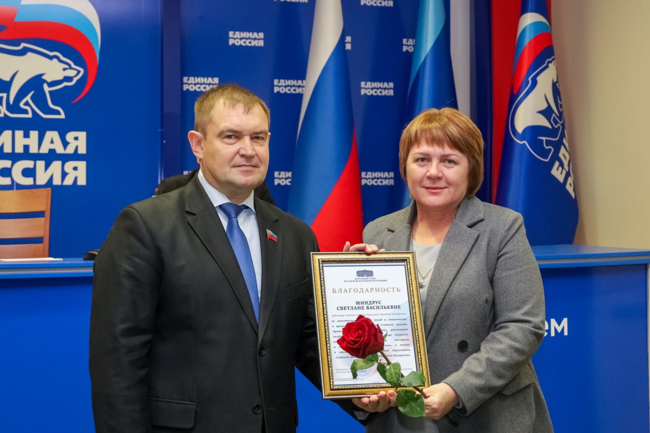 Андрей Сопельник вручил Председателю Счетной палаты ЛНР Павлу Муратову грамоту Народного Совета за значительный личный вклад в становление и организацию деятельности Счетной палаты ЛНР, реализацию государственной политики в сфере внешнего государственного финансового контроля в республике. Кроме того, благодарности Народного Совета получили отличившиеся сотрудники ведомства.