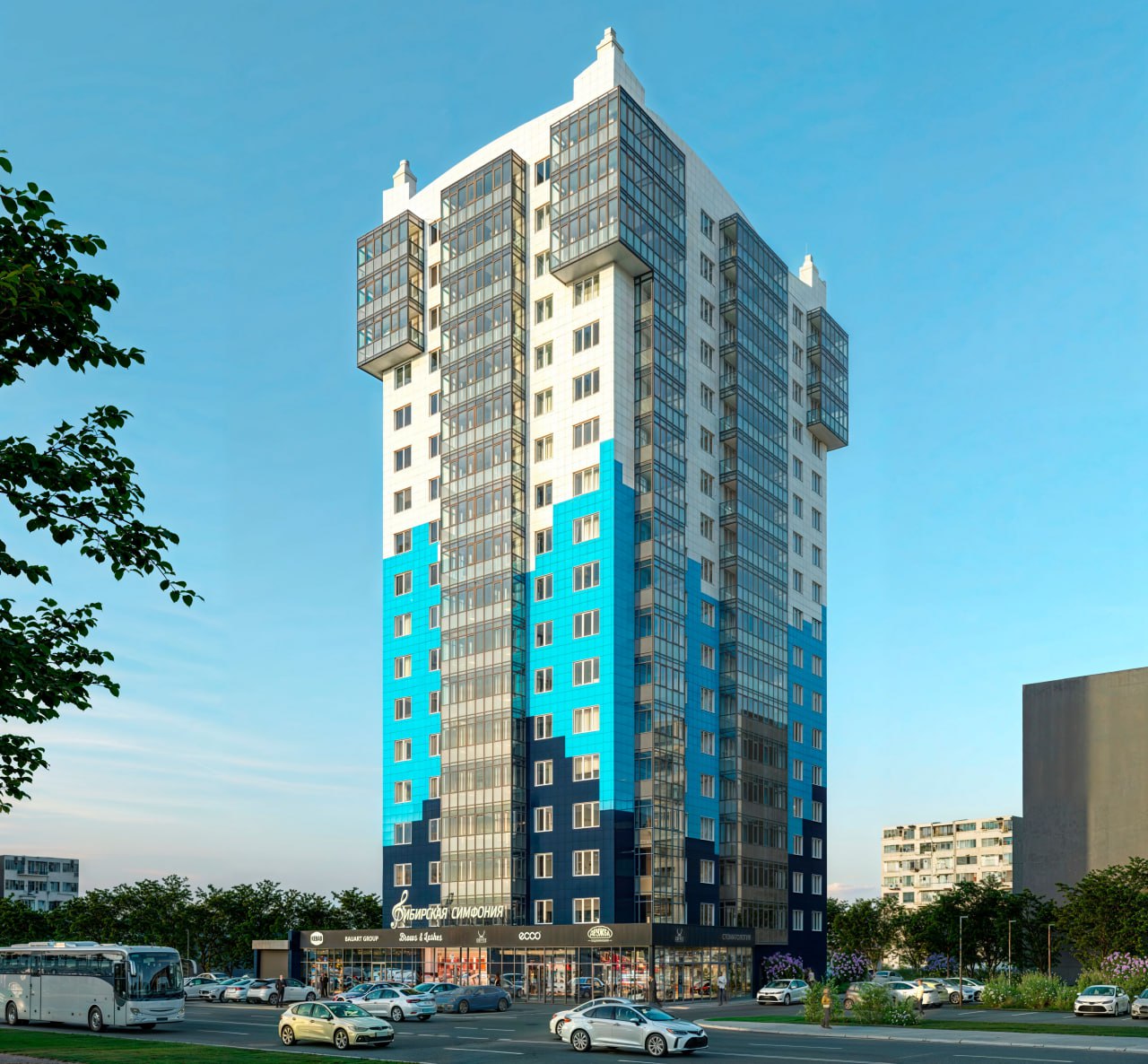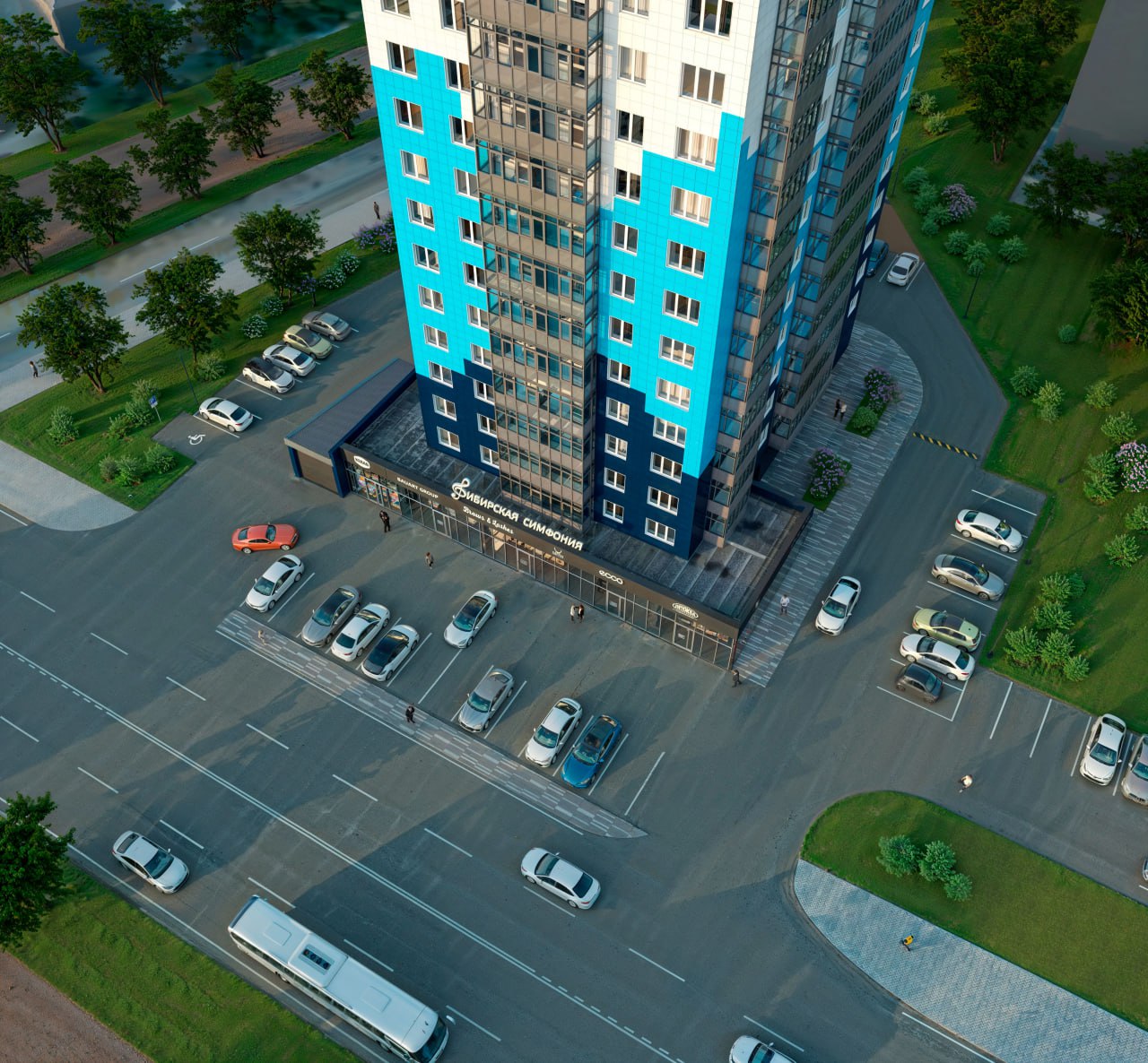 Общая площадь 19-этажного дома составит почти 11 тыс м2. Там будет 136 квартир, на первом этаже - коммерческая недвижимость. У дома - детская площадка. Предусмотрен и подземный паркинг на 54 машиноместа.