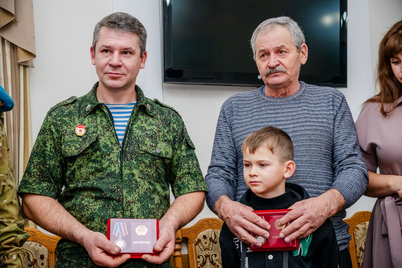 Медалью «За верность долгу» удостоены Андрей Коняхин, Николай Травников, Сергей Пивоваров и его брат, Иван Пивоваров – посмертно. Награду за сына вручили его отцу – Александру Ивановичу.