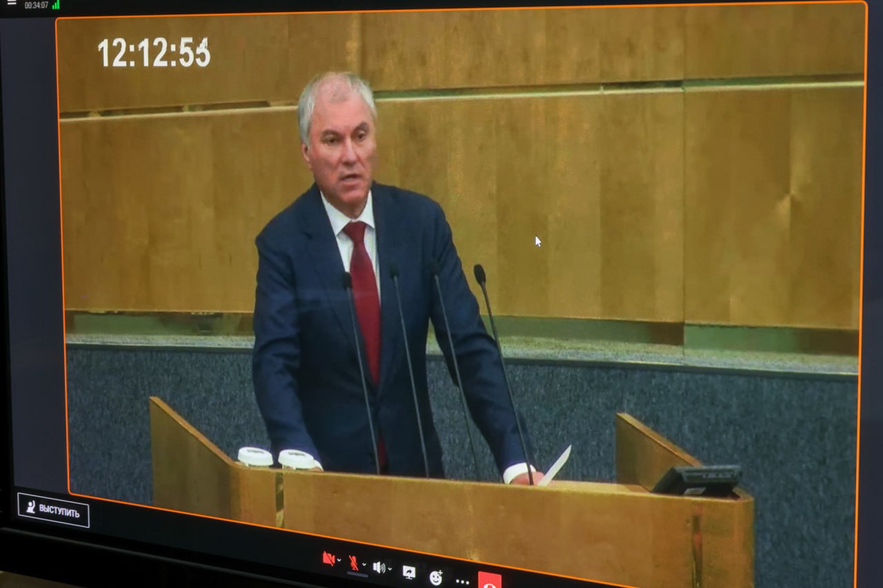 Председатель Народного Совета ЛНР Денис Мирошниченко в режиме видео-конференц-связи принял участие в открытии десятой сессии VIII созыва Государственной Думы.