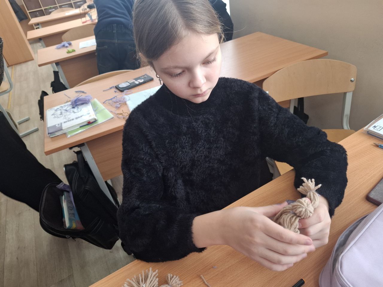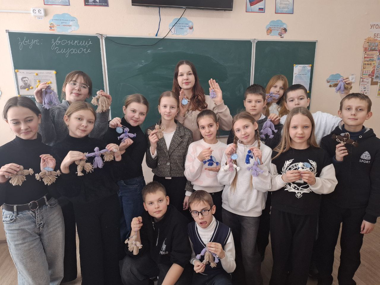 Под руководством учителей школьники изготовили символы-обереги, наполненные искренними пожеланиями здоровья, удачи и успеха военнослужащим Вооружённых сил Российской Федерации.
