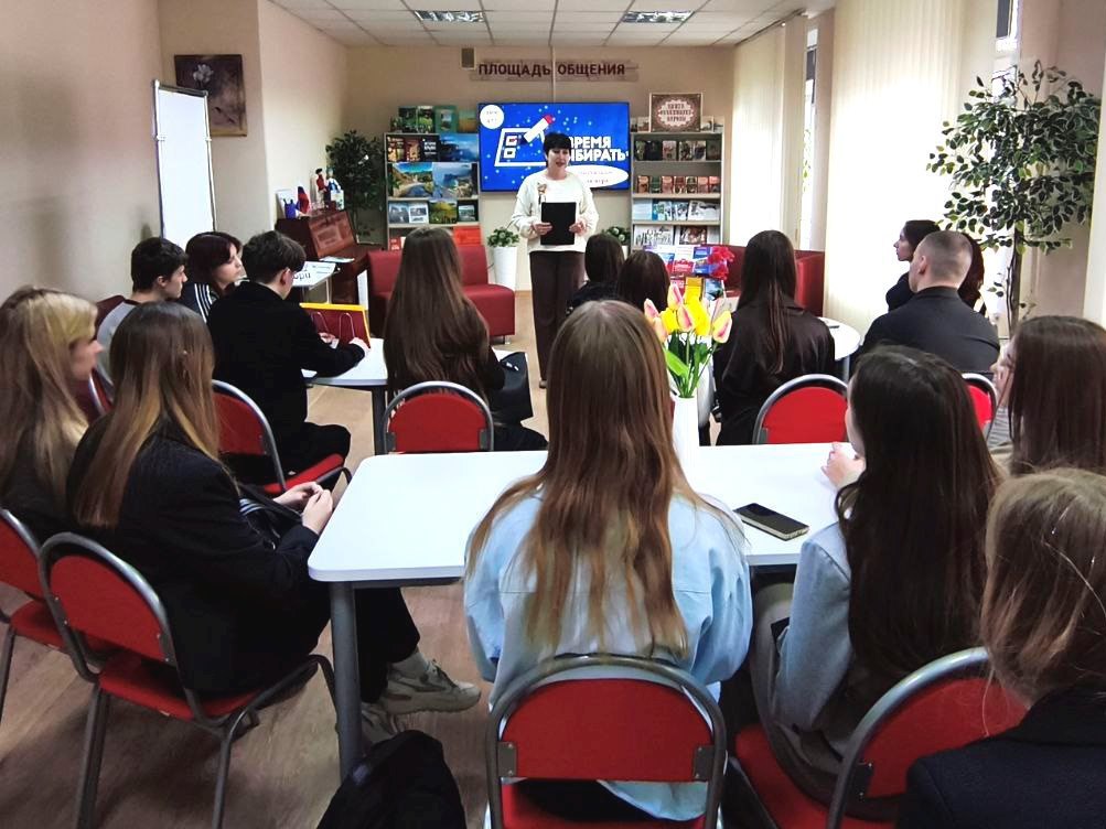 Секретарь УИК № 476 Лилия Шилова провела для учеников школы № 15 познавательное мероприятие «Выбери свое будущее», рассказав о важности участия в выборах и гражданской активности.
