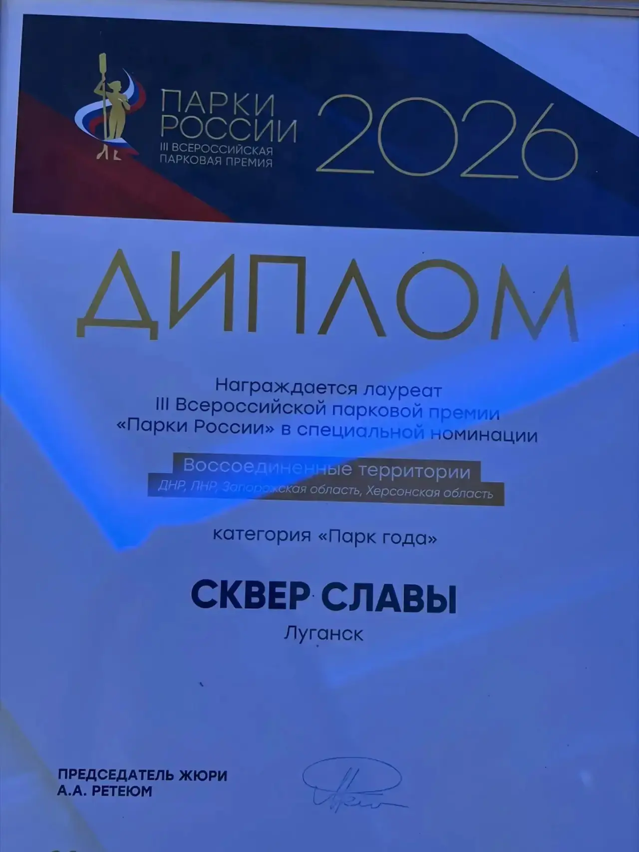 Сквер Славы, расположенный в самом сердце Луганска, стал лауреатом специальной номинации «Воссоединенные территории» (ДНР, ЛНР, Херсонская и Запорожская области). В сквере после масштабной реконструкции появилась аллея героев СВО, летний кинотеатр, уютный освежающий фонтан и современная детская площадка. Спасибо Москве)
