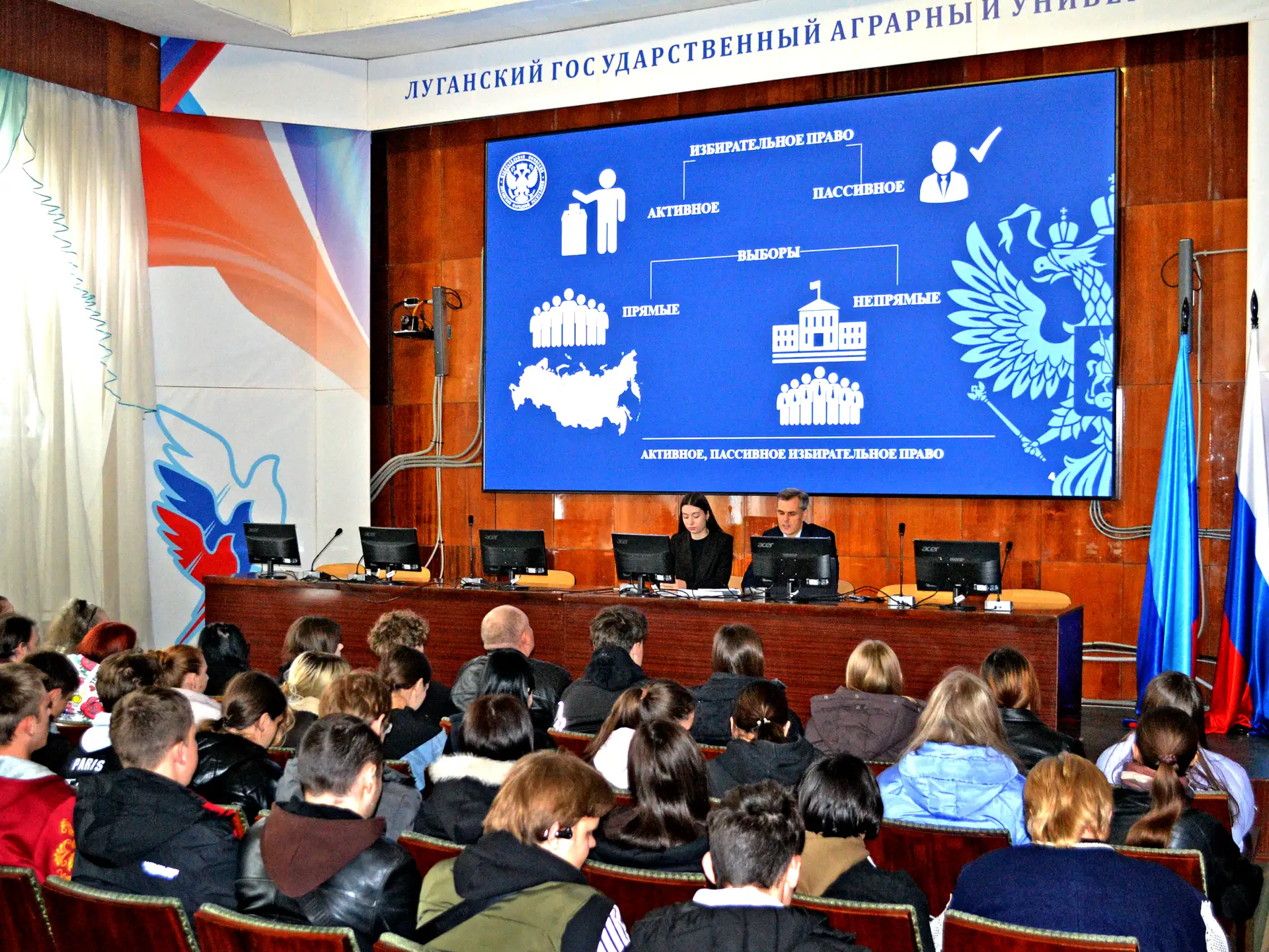 22 апреля в Малом актовом зале Луганского государственного аграрного университета имени К.Е. Ворошилова состоялся дополнительный урок по повышению правовой культуры будущих избирателей «Просто о выборах», приуроченный ко Дню молодого избирателя в ЛНР. Мероприятие собрало студенческую аудиторию, заинтересованную в понимании избирательных процессов.