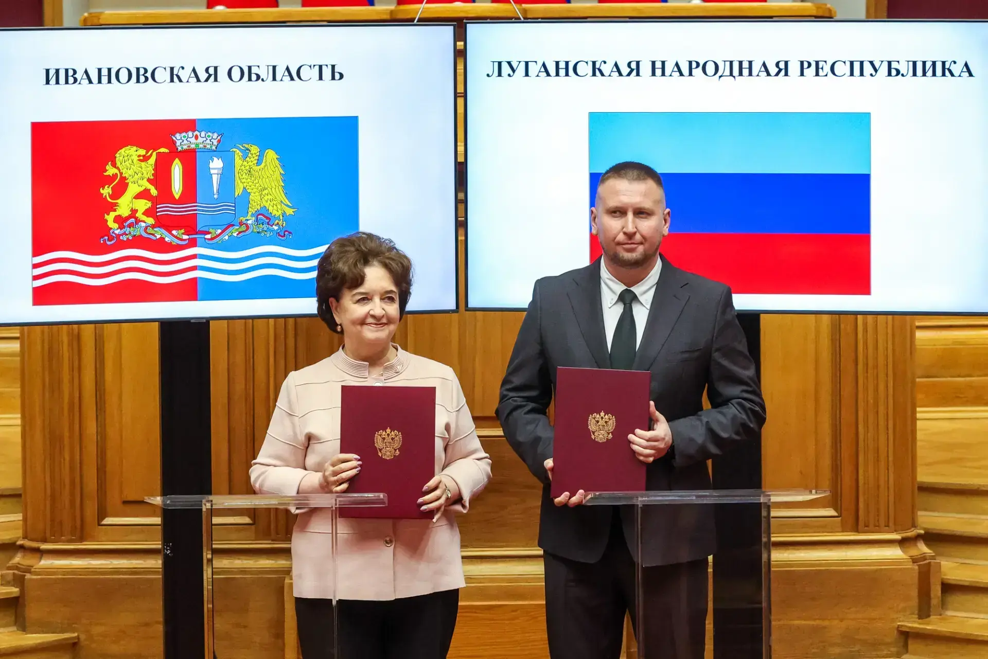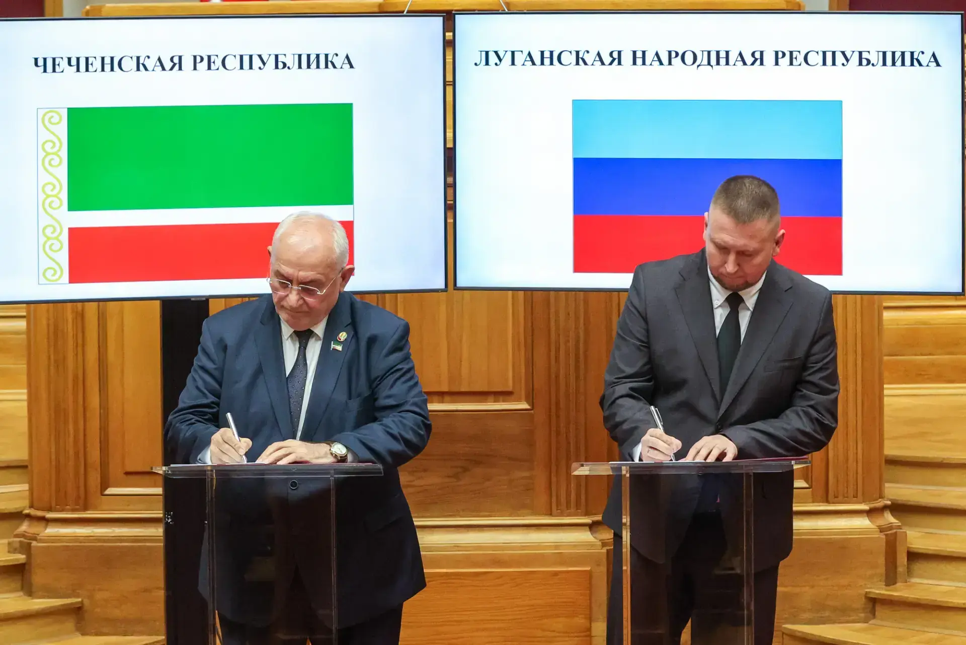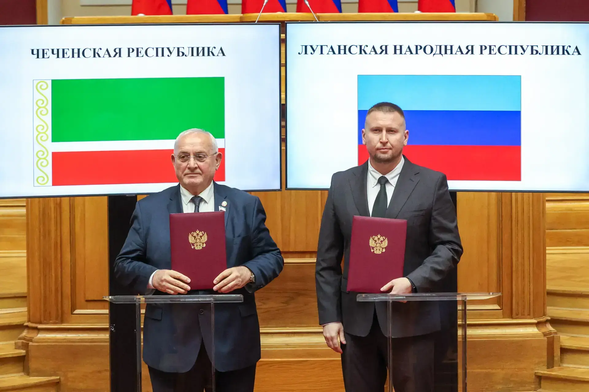 В Санкт-Петербурге в рамках мероприятий Совета законодателей при Федеральном Собрании Председатель Народного Совета ЛНР Денис Мирошниченко подписал соглашения о межпарламентском сотрудничестве с Председателем Парламента Чеченской Республики Шаидом Жамалдаевым и Председателем Ивановской областной Думы Мариной Дмитриевой.