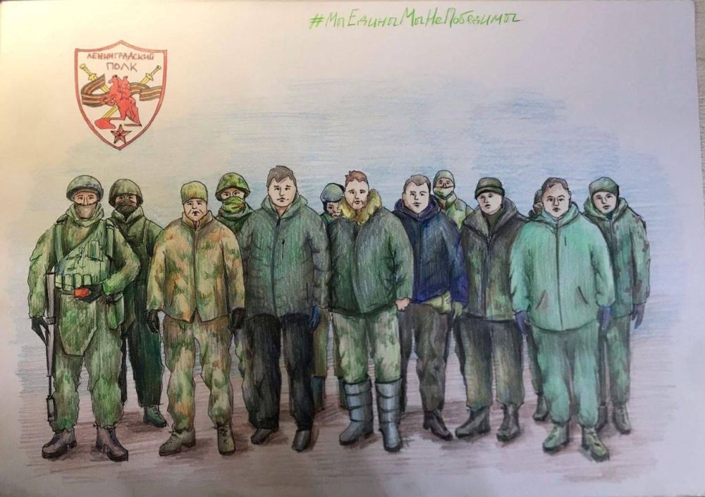 На её рисунке – наша с председателем Законодательного Собрания Санкт-ПетербургаАлександром Николаевичем Бельским и депутатами регионального парламента Юрием Николаевичем Гладуновым и Константином Александровичем Чебыкиным встреча с бойцами Ленполка. На лице каждого – сосредоточенность, ответственность, внутренняя сила. Здесь нет случайных людей – каждый делает всё возможное для Победы.