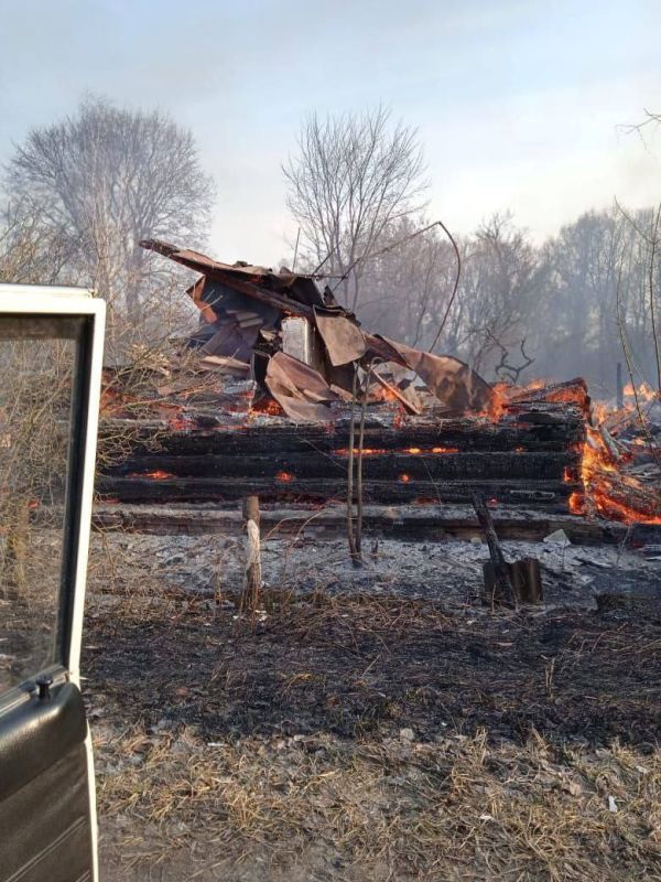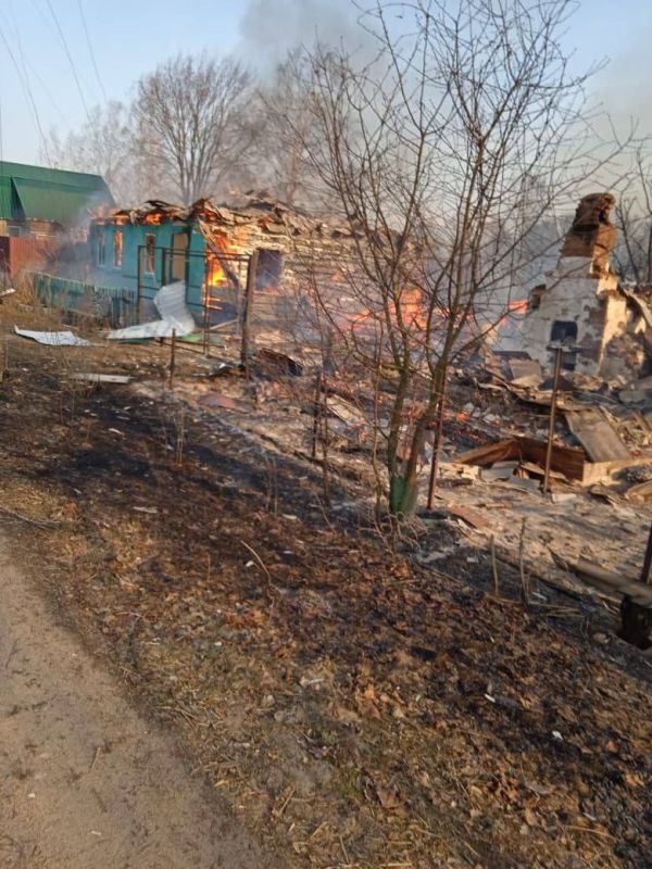 В деревне Раковка Брянской обл. из-за атак ВСУ сгорело несколько домов (фото 1-3).
