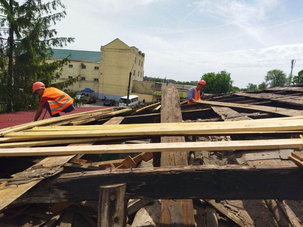 На сегодняшний день сделан разбор старого кровельного покрытия, идет разбор стропильной системы и ведется очистка чердачного перекрытия от старого утеплителя.