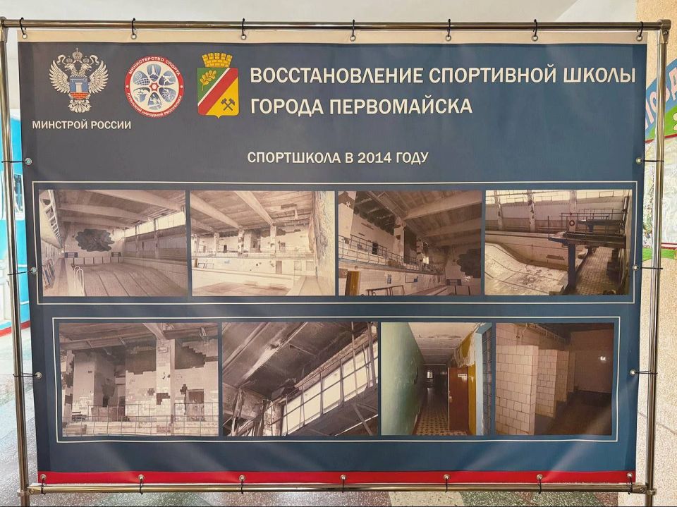 В ходе совещания по вопросам социально-экономического развития ДНР, ЛНР, Запорожской и Херсонской областей Президент Российской Федерации Владимир Владимирович Путин открыл ряд социальных объектов в новых регионах, в том числе и бассейн в Спортивной школе города Первомайска, восстановленный силами специалистов ППК «Единый заказчик».