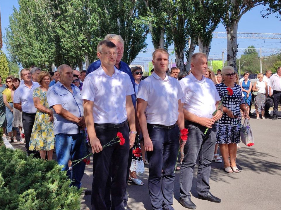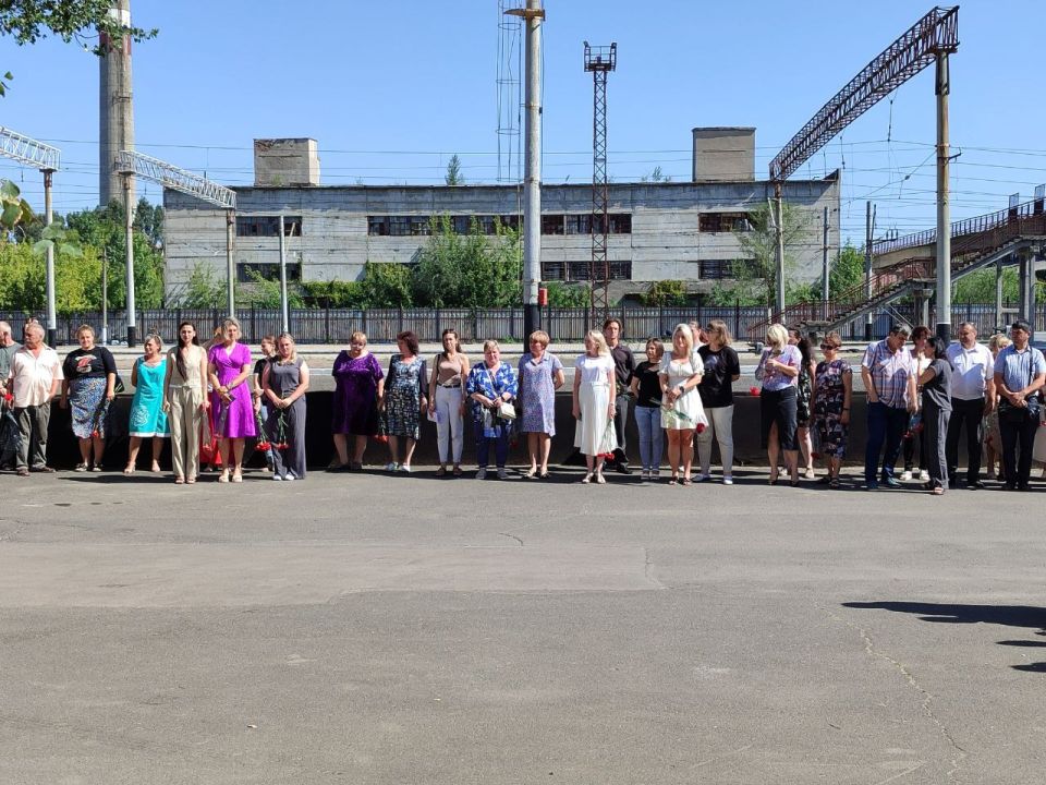 Мероприятие началось с важной и трогательной церемонии. Перед началом торжественной части работники предприятия и почетные гости возложили цветы к памятному знаку воинам-железнодорожникам Луганщины, погибшим в боях за свободу и независимость нашей Родины, в ходе проведения Специальной военной операции, а также к памятному стенду «Бессмертный полк». Эта дань памяти подчеркнула неразрывную связь между мирным трудом, героическим прошлым, а также настоящим защитников Отечества.