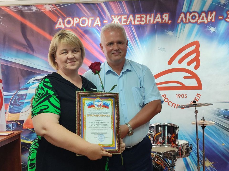 Кроме того, Константин Бутримов вручил Благодарности Федерации профсоюзов ЛНР первичным профсоюзным организациям РОСПРОФЖЕЛ за высокий профессионализм и самоотдачу в работе, добросовестный и плодотворный труд, активное участие в профсоюзной деятельности и в связи с празднованием Дня железнодорожника.