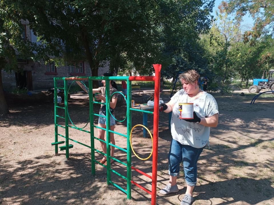 На территории детской площадки участники субботника покосили траву, вырезали ненужную поросль, собрали и вывезли мусор, а также покрасили конструкции игровой зоны, лавки и столик.
