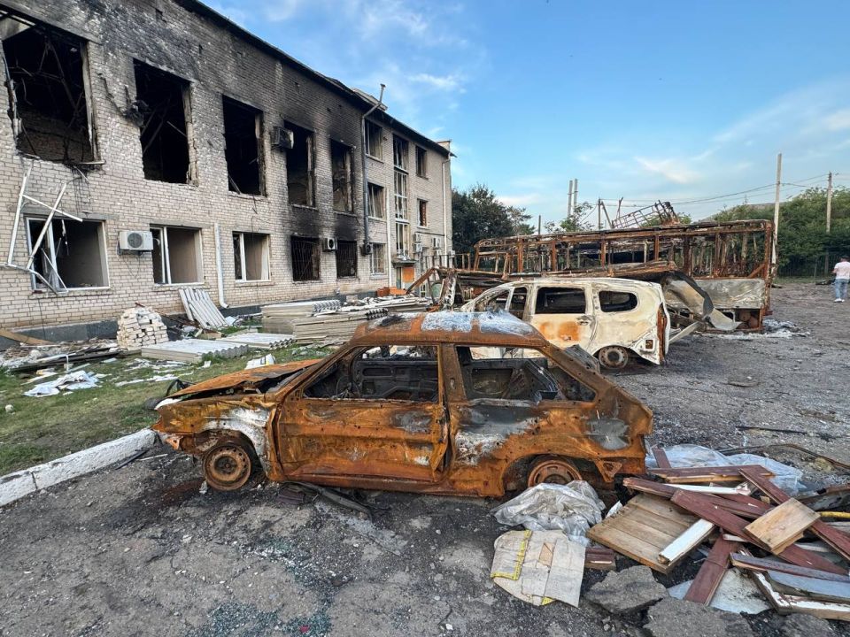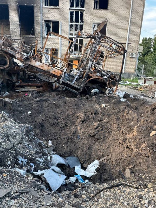 В рабочее время – в разгар дня – враг целенаправленно бил туда, где находились люди. Начался пожар, разрушения серьёзные. На фото последствия этой атаки.