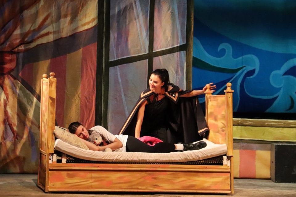 В работе над музыкальной сказкой «Питер Пэн» принимают участие артисты разных возрастов. В роли Питера Пэна – Вероника Балджи, а противостоит ему главный злодей пират Крюк в исполнении Александра Реди.