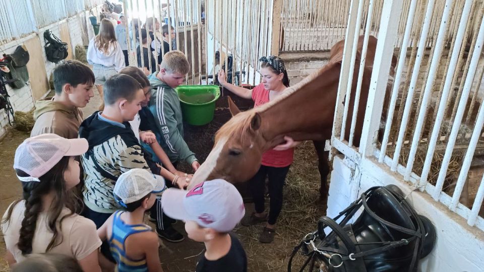 Благодаря поддержке министра спорта ЛНР Олега Шеренешева и врио директора "СШ по конному спорту" Кристины Оснач ребята из прифронтовой зоны смогли покататься на лошадках, прослушали интересную экскурсию, покормили наших четвероногих друзей, нафотографировались. Получили море положительных эмоций! Теплом своих сердец поделился дружный коллектив школы. А иппотерапия (лечение и реабилитация через общение с лошадьми) известна и применяется давно.