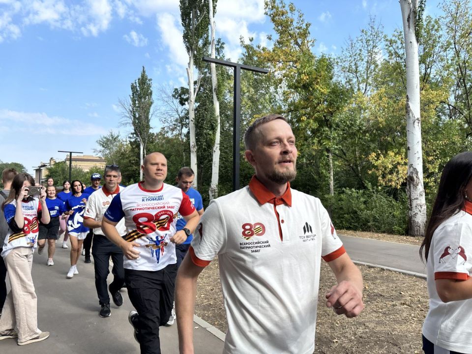 Депутаты всех уровней, министр спорта ЛНР, координатор федерального партпроекта «Выбор сильных» Олег Шеренешев, активисты партии, «Молодой Гвардии Единой России», молодежь и неравнодушные жители присоединились к патриотическому забегу. Он начался от памятника Советским воинам-танкистам и завершился на Мемориальном комплексе «Острая Могила».