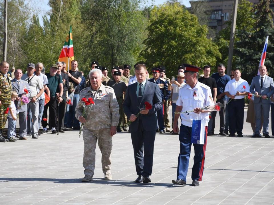 Затем, вместе с присутствующими на мероприятии гостями и жителями города возложили цветы к подножию памятного знака в память о подвиге наших земляков.