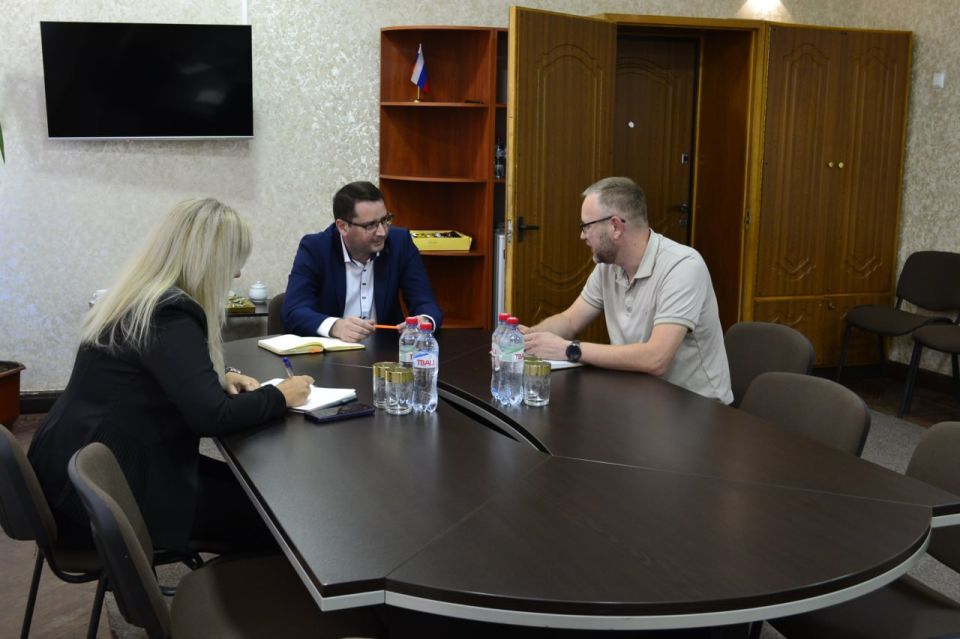 Сегодня заместитель начальника инспекции жилищного и строительного надзора Луганской Народной Республики Павел Валерьевич Орловский в рамках выездного рабочего совещания провел встречу с временно исполняющим полномочия Главы Марковского муниципального округа ЛНР Андреем Викторовичем Клименко.