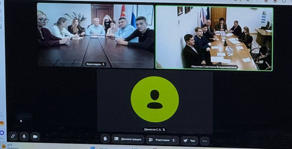 Сегодня состоялась видеовстреча представителей Молодежных палат Краснодонского муниципального округа и Тюменской городской Думы.