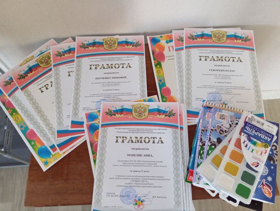 Сегодня в Ровеньковском детском центре научно-технического творчества состоялось награждение победителей и призёров городского этапа республиканской выставки-конкурса работ детей с ограниченными возможностями «Лучики света».
