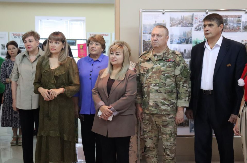 На открытии выставки присутствовали председатель Совета Антрацитовского муниципального округа Виктория Сошина и её заместитель Елена Рахмукова, заместитель главы Администрации Антрацитовского МО Наталья Шаталова, депутат Совета округа, бывший участник СВО, муниципальный координатор проекта «Историческая память» Александр Линьков, почетный гражданин города Антрацита и Антрацитовского района Александр Ткаленко, представители филиала Госфонда поддержки участников СВО "Защитники Отечества" по ЛНР в г. Антраците и Антрацитовском районе, органов местного самоуправления, жители округа. Они подчеркнули важность события для увековечивания истории и патриотического воспитания молодежи.