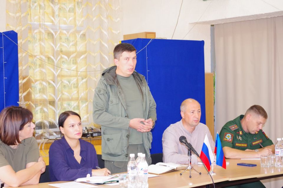 Сегодня в поселке Фрунзе провели встречу с руководителем филиала фонда «Защитники отечества» в ЛНР, ветераном СВО Анатолием Янчуком, и уполномоченным по правам человека в ЛНР Анной Сорокой.