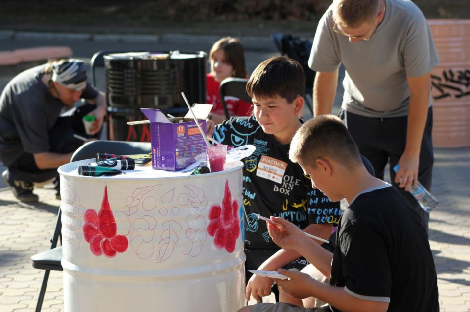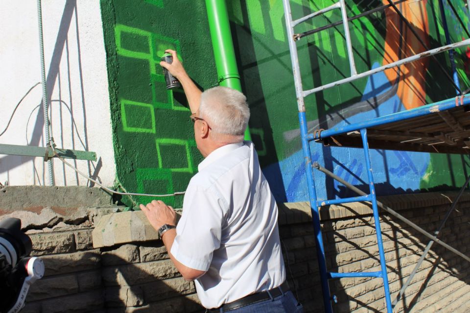 Совместно с молодежью и жителями города, Тюменскими гостями создали несколько интересных объектов, которые станут выставочными элементами в Тюменских и Краснодонских пространствах: тканевое и керамическое панно, расписали нефтяные бочки. Прикоснулся к старинному, но очень красивому ремеслу – ткачеству ковра. А также совместно завершили яркий мурал, внося свои штрихи, который символизирует бережное сохранение истории и переплетение прошлого, настоящего и будущего между Краснодоном и Тюменью.