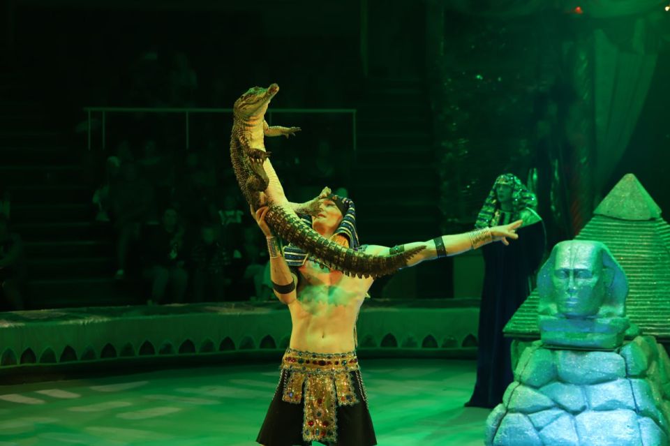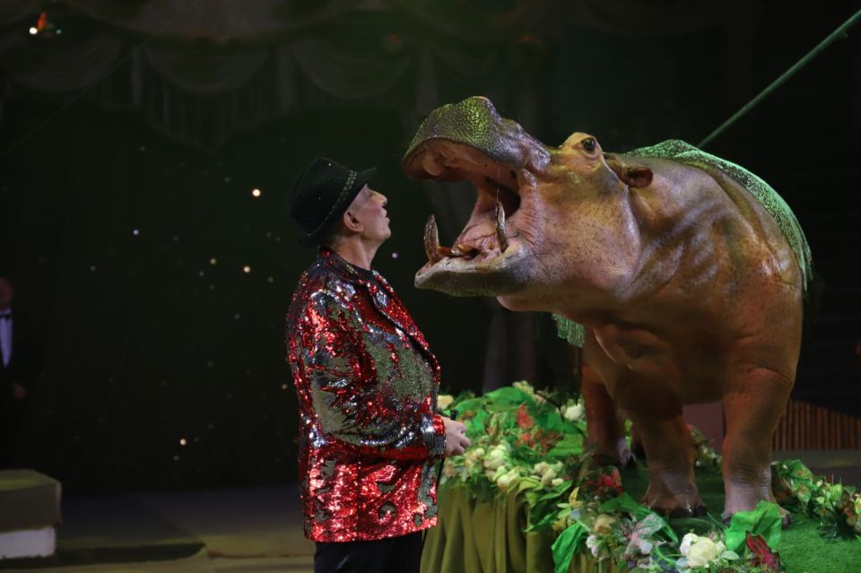 Ярким украшением программы стал легендарный аттракцион «Джамбо» с бегемотом Юлианой – одним из самых редких животных в цирке. Также зрители увидят верблюдов, дикобразов, енотов, обезьян, удавов и многих других питомцев.