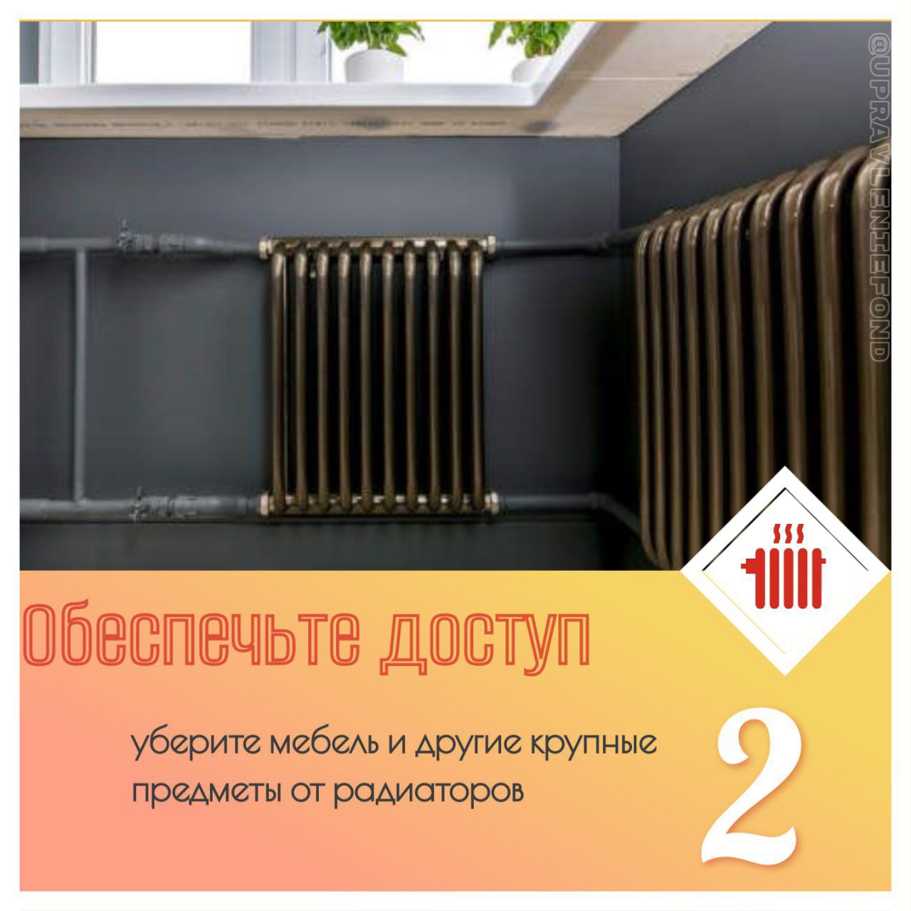 2 Устранение препятствий (мебели и др. крупных предметов) от радиаторов необходимо для равномерного обогрева помещения и личной безопасности.