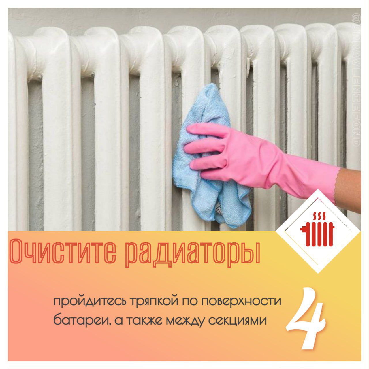 4 Если не убрать загрязнения с поверхности батареи, пыль поднимется вместе с горячим воздухом после подачи отопления.