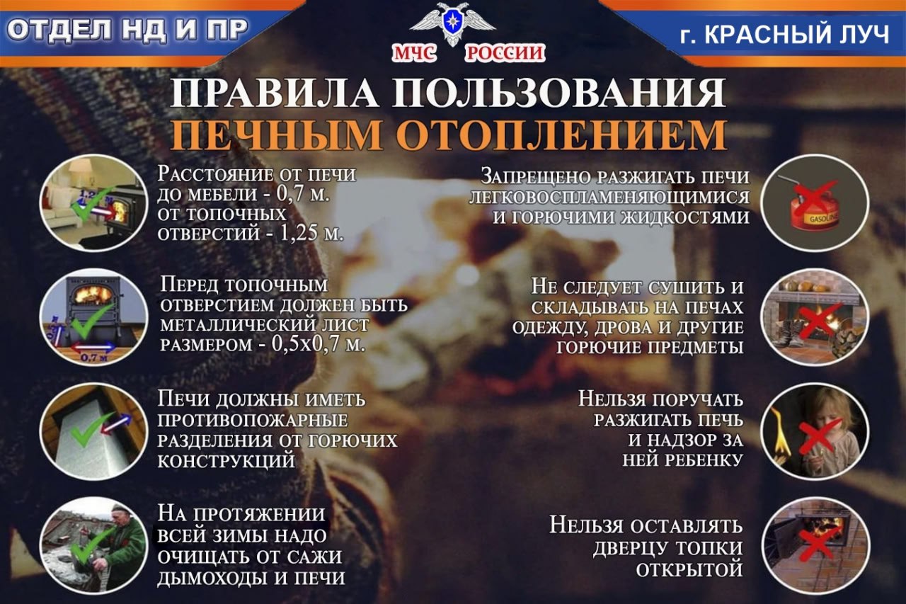 Отдел надзорной деятельности и профилактической работы по г. Красный Луч УНД и ПР ГУ МЧС России по ЛНР напоминает требования к эксплуатации печного отопления