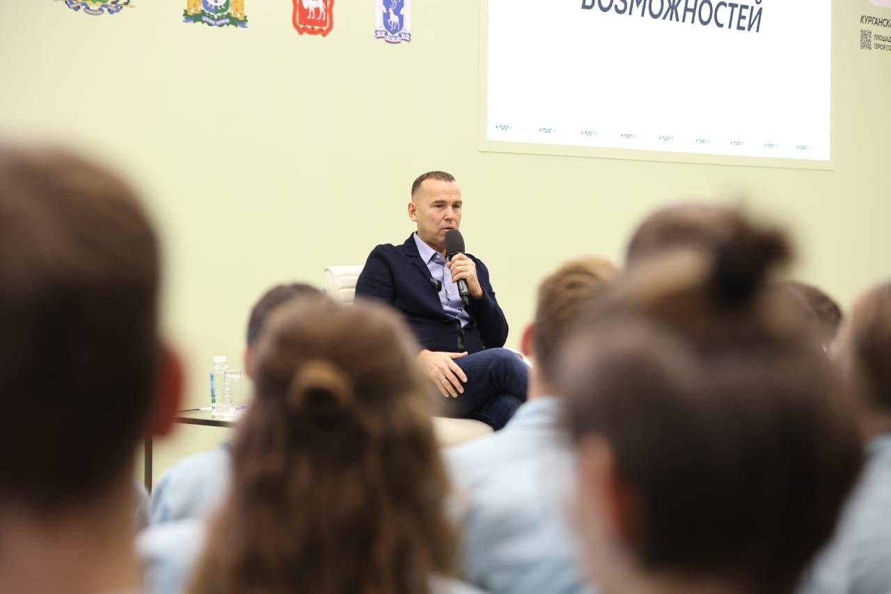 Губернатор Курганской области Вадим Шумков встретился с молодежью, в частности и молодёжной делегацией из Краснодона, которая принимает участие в форуме Уральского федерального округа «УТРО». Обсуждались вопросы дальнейшего сотрудничества и шефской поддержки. В течение полутора часов Глава Курганской области отвечал на их вопросы.