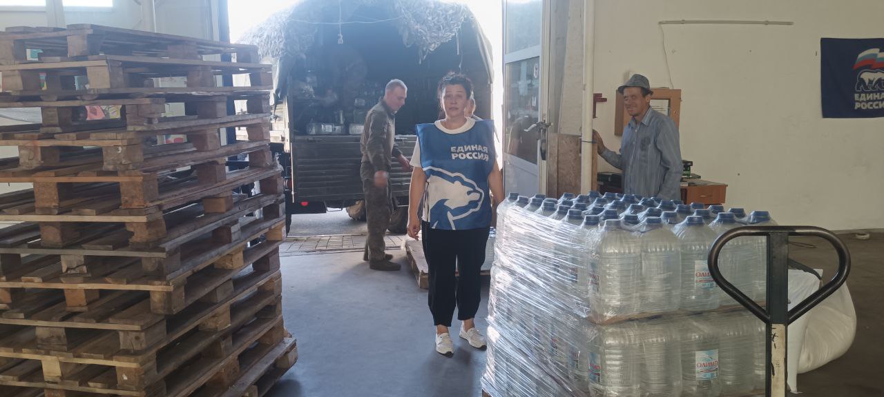 Волонтеры гуманитарного центра «Единая Россия» в городе Рубежное передали нашим бойцам на передовую 3 тонны бутилированной питьевой воды, поддоны для обустройства позиций, а также камуфлированные плащи от дождя.