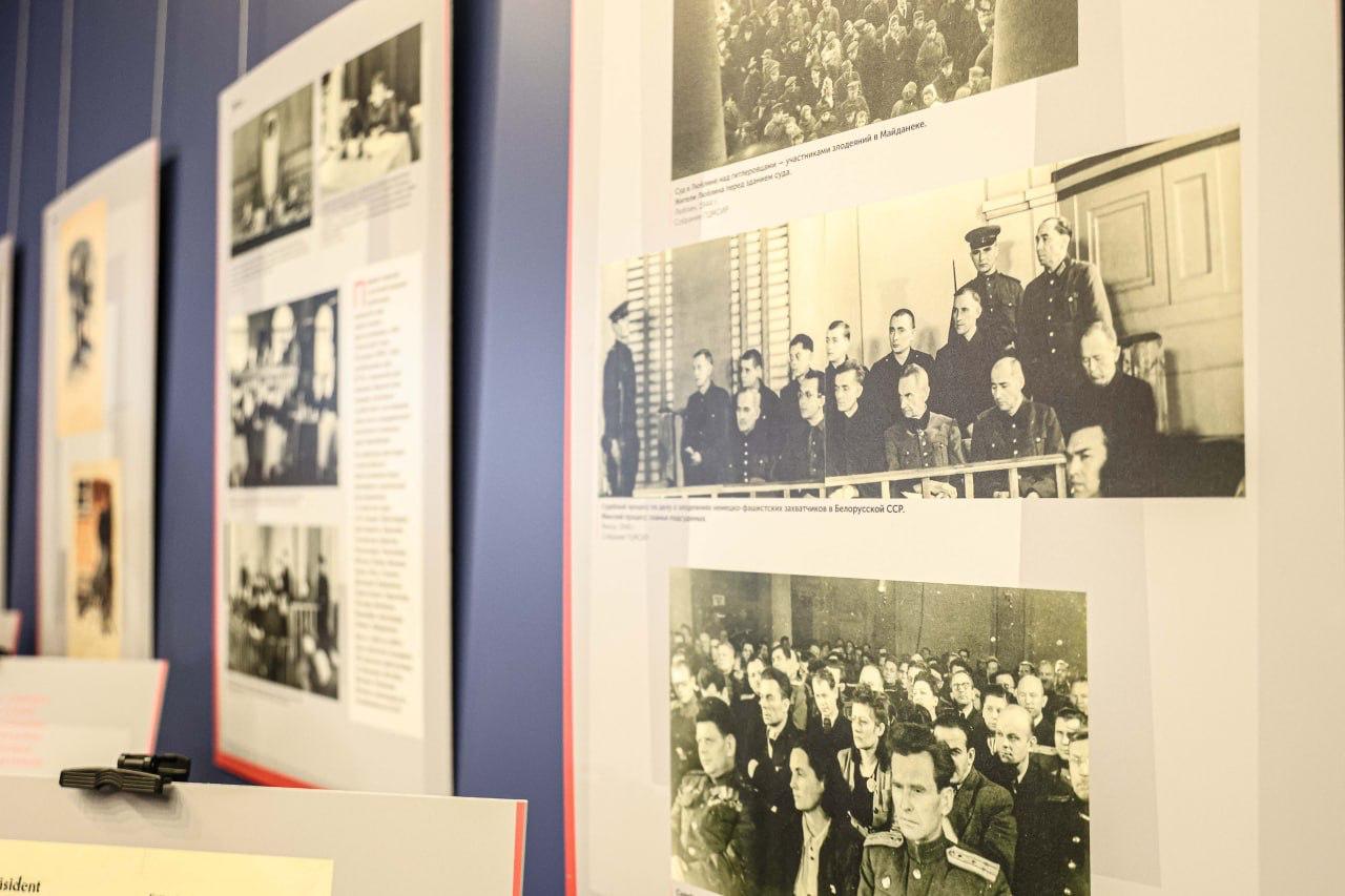 Экспозиция подготовлена при поддержке Президентского фонда культурных инициатив (ПФКИ). На выставке представлены архивные документы, фотографии и материалы, посвященные организации и итогам суда над военными преступниками. Первая часть выставки посвящена подготовке к Нюрнбергскому процессу. Далее экспозиция рассказывает о советской делегации на этом историческом событии и роли СССР.
