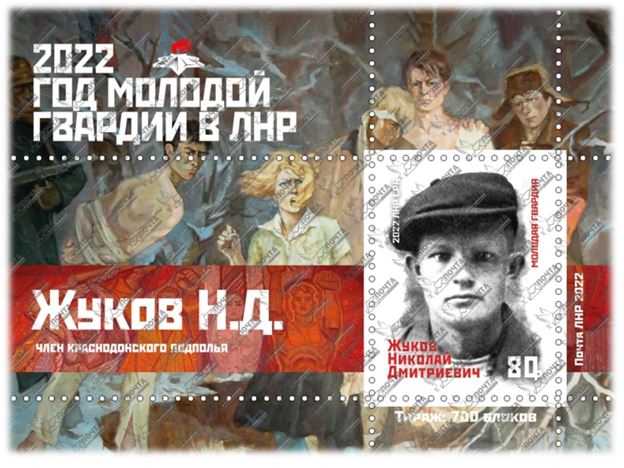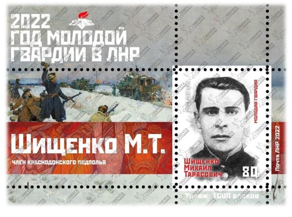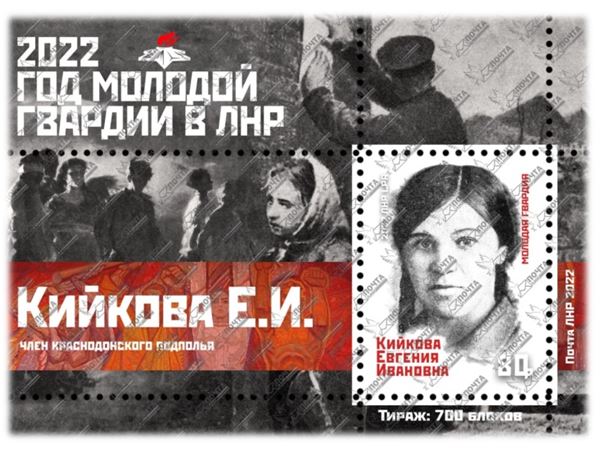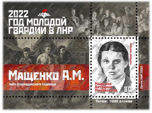 В 2022 году Почта ЛНР выпустила серию блоков художественных почтовых марок «80 лет со дня основания «Молодой гвардии», а также блоки, посвященные антифашистам- молодогвардейцам. В их числе – Мащенко А. М., Жуков Н.Д., Елисеенко А.З., Огурцов Д.У., Кийкова Е.И., Шищенко М.Т., Ткачев В.И. и другие.